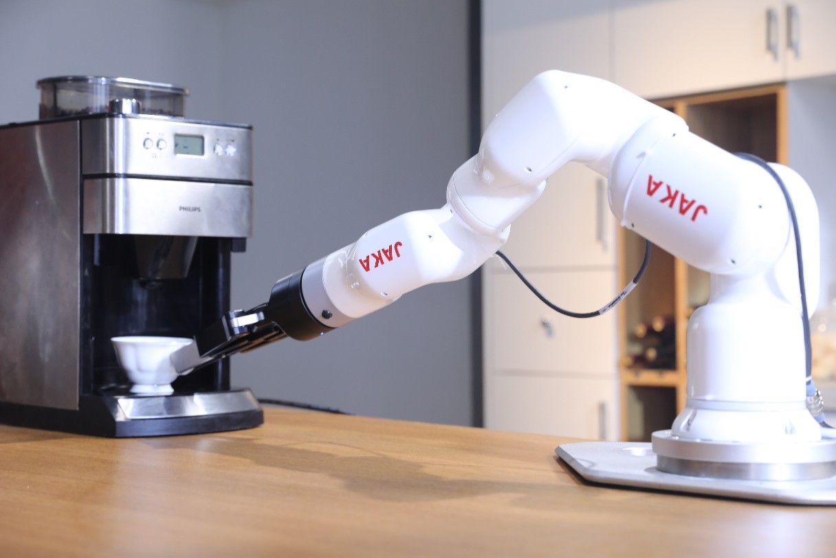 2020年荣获CIFF大奖的节卡All-in-one共融系列协作机器人,创新性地提出将机器人与机器人、机器人与环境、机器人与人三者交互共融,高度融合无线示教、图形化编程、视觉等机器人技术,采用JAKA S³(Smart, Simple, Small)的产品设计原则,进一步提升了协作机器人安全、易用、灵活的核心要素,以及创新地实现了协作机器人的共融性。
