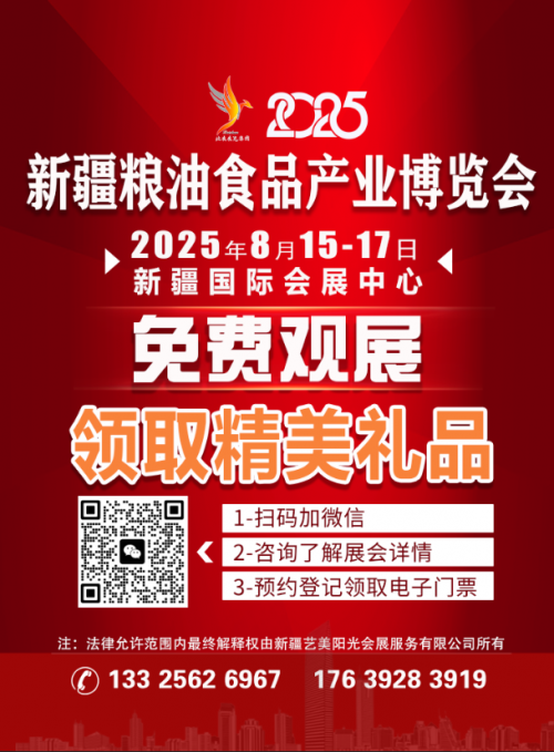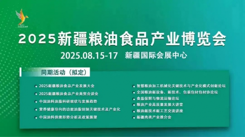 在政策红利持续释放、市场需求旺盛的背景下,2025 新疆粮油食品产业博览会顺势而为,紧扣产业发展需求,致力于为行业搭建高质量交流平台。展会将于 2025 年 8月15-17日 在新疆国际会展中心盛大启幕,将全方位展现粮油食品产业的创新成果与发展活力。