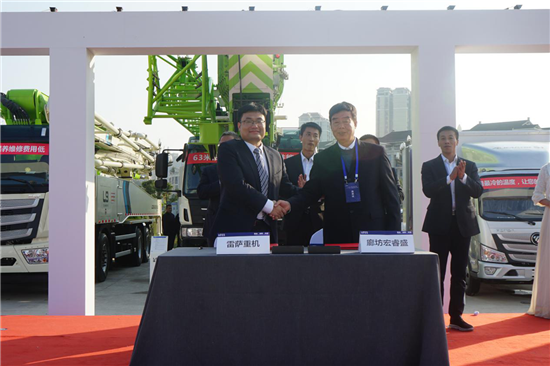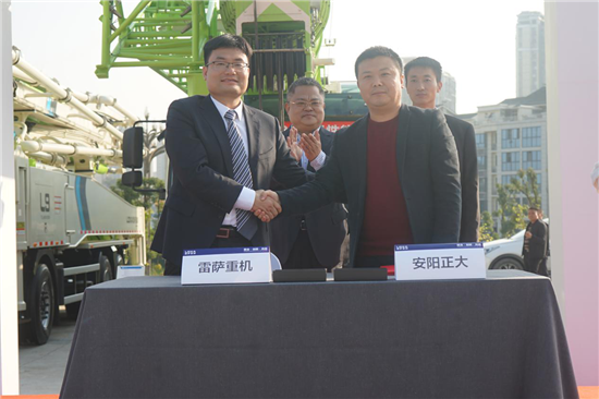 雷萨重机分别与三家经销商完成总计500余台的新业务签约仪式