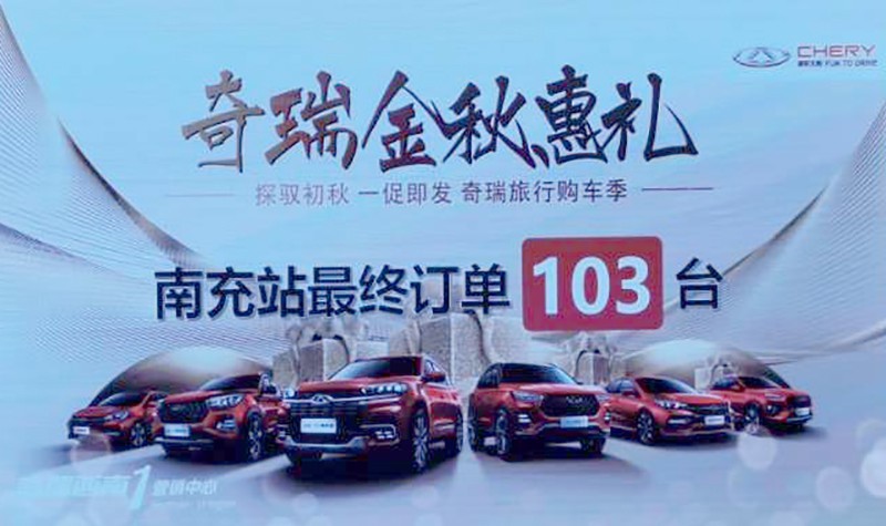 近日,我们从9.20奇瑞汽车金秋团购会上获悉,南充、自贡两站斩获订单204台。其中,南充玖田车业奇瑞4S等企业的订车风云榜在南充嘉舟丽港完美收官,订车数量达到百余台。瑞虎3X、艾瑞泽5、瑞虎8位居前位。同时还有大部分消费者冲着打探瑞虎8PLUS来的。