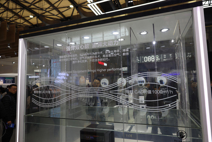 作为展馆最吸引人的区域之一,IAM最新、最具科技感的旗舰产品——空气净化器KJ1500F吸引了众多目光。在IAM展区,兼具产品展示和实验的KJ1500F体验区,通过产品雕刻、光模拟、喷雾以及重力感应等技术手段,在带给观者震撼光感体验的同时,场景化的体验,也让该旗舰产品的性能得到充分的体现。