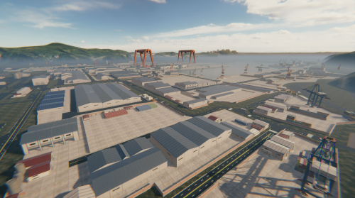 两家公司已经建立了船厂车间和船坞空间规划虚拟仿真平台的开发逻辑,并验证了在Unity中开发该平台并与真实数据交互所需的技术。在技术验证过程中,双方通过对真实船厂数据的可视化完成船厂设施和空间布局的虚拟仿真,真实还原了韩国大宇船厂的虚拟三维模型。此外,通过对船厂内运输工具移动路线和建材堆垛布局优化方案的模拟,船厂伸展面积和建材物流路线规划皆可在平台上检查。