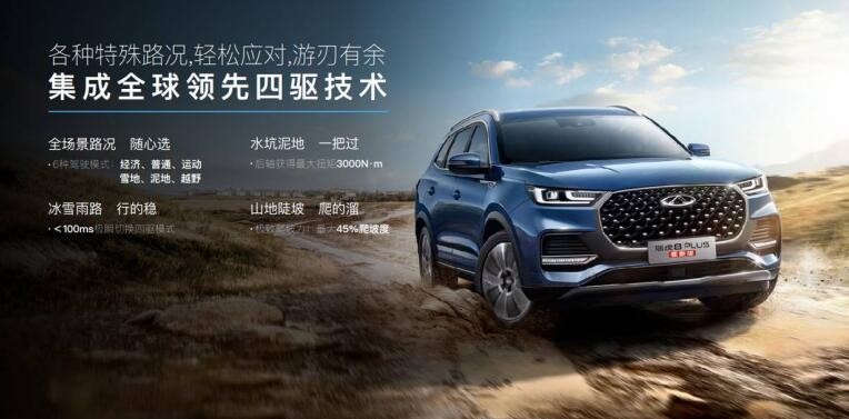 瑞虎8PLUS鲲鹏版拥有全新一代电控智能四驱的实力。该系统拥有经济、普通、运动,露营、滑雪、越野6种全场景路况模式,方便用户随心切换。