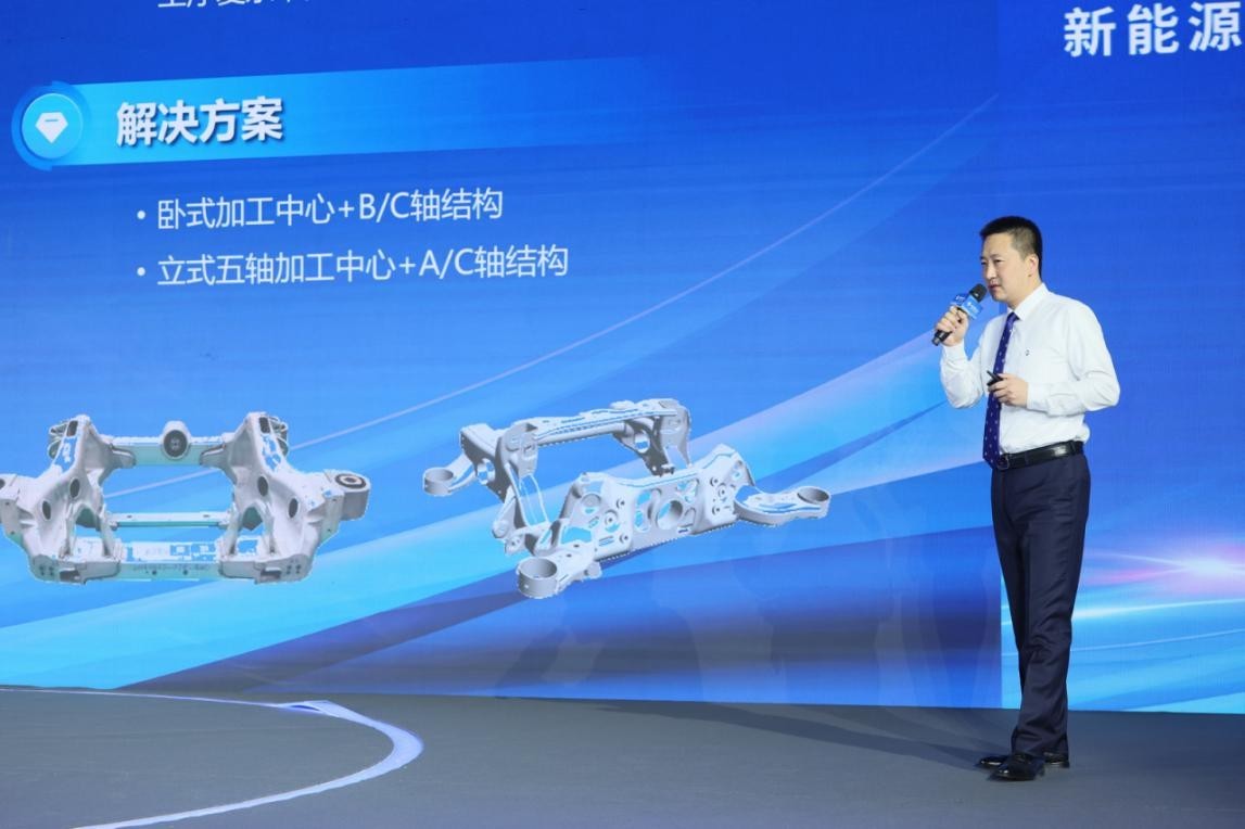 本次发布会,通用技术集团深入分析行业发展现状及趋势,解读了新能源汽车典型零件加工的痛点和难点,通过“成型+切削+自动化”的集成产品,针对汽车轻量化、电池系统结构件加工、底盘系统典型零件加工,为客户提供了效率与效益兼具的行业全链条解决方案,充分展现了在车身结构、底盘系统、电池电驱动系统等核心零件加工领域的技术成果和深厚底蕴,有力支撑和推动新能源汽车行业在“双碳”目标下的转型升级。发布会还邀请了通用技术集团战略合作伙伴西门子公司和发那科公司分享行业加工应用经验。