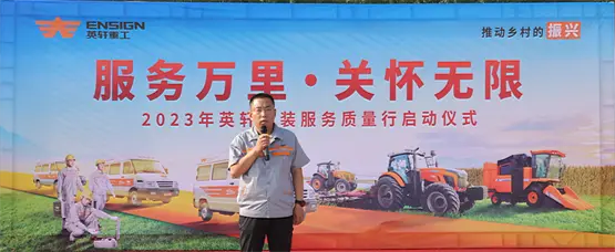 实干诠释责任担当,服务万里保障随行。6月27日,英轩农装再次吹响服务集结号,开启2023年“服务万里·关怀无限”的新征程。英轩重工农装事业部总经理陈敏革携农装事业部相关部门领导、营销公司团队出席,全柴、上柴等供应商代表及经销商代表参与此次启动仪式,共同开启英轩设备高质量巡检服务活动。